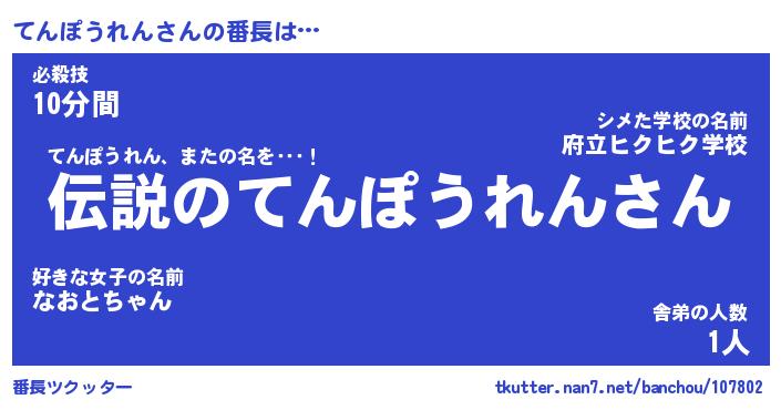 | ヒーロー風カッコイイあだ名 | 『スーパーテンポウレン』『黄金騎士テン』 |