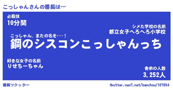 | ヒーロー風カッコイイあだ名 | 『スーパーコッシャン』『暗黒騎士コッ』 |