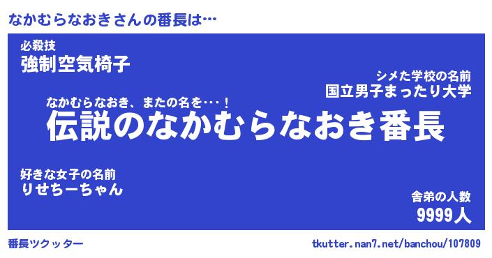 | 伝説のあだ名 | 『伝説のスナイパーなかむらなおき』 |