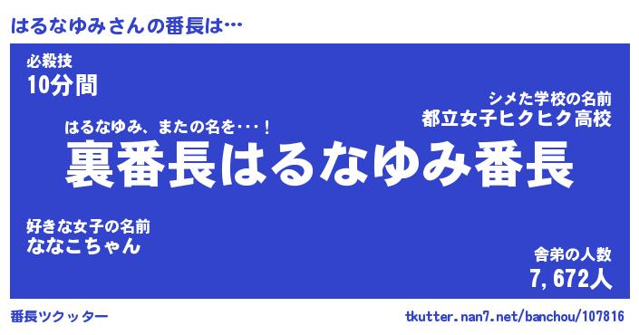 | ファンタジー風あだ名 | 『ハルフェル』『エターナルハルナユミー』 |