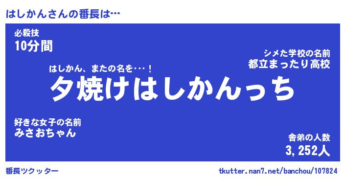 | ファンタジー風あだ名 | 『ハシフェル』『エターナルハシカンー』 |