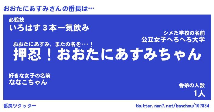 | 恥ずかしいあだ名 | 『プリティーおおたにあすみ』『おおちん』 |