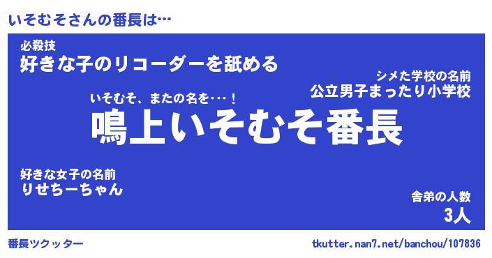 | 意味不明あだ名 | 『ペロリンいそむそ』『永久保存いそむそ』 |