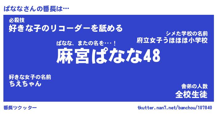 | 肩書あだ名 | 『ぱなな店長』『ぱなな総理大臣』 |