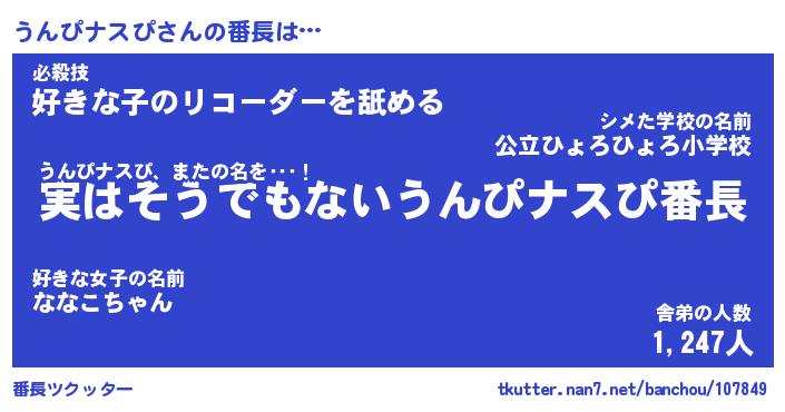 | 伝説のあだ名 | 『封印されしスナイパーうんぴナスぴ』 |