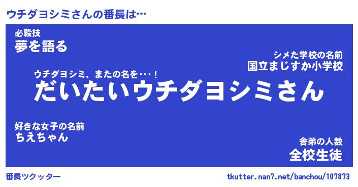 | ヒーロー風カッコイイあだ名 | 『スーパーウチダヨシミ』『暗黒騎士ウチ』 |
