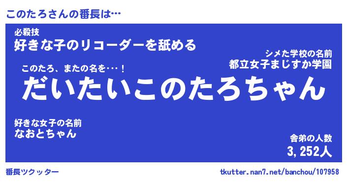 | 意味不明あだ名 | 『ペロリンこのたろ』『永久保存このたろ』 |