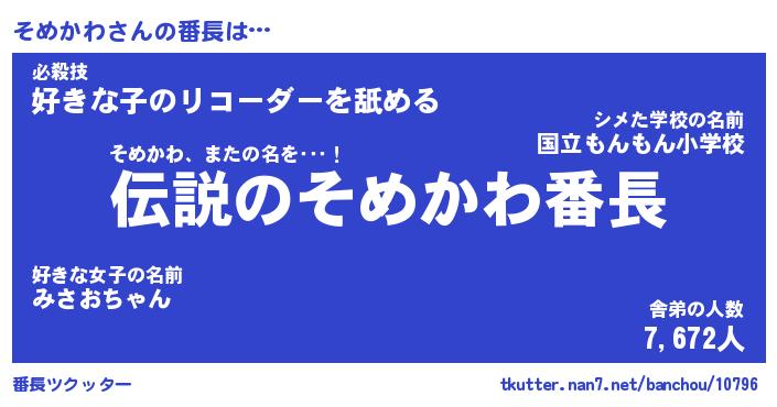 | 意味不明あだ名 | 『ペロリンそめかわ』『永久保存そめかわ』 |