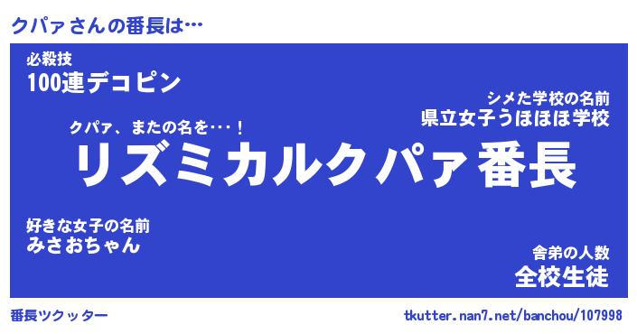 | 意味不明あだ名 | 『ペロリンクパァ』『クパァフォーエバー』 |