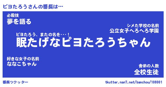 | 肩書あだ名 | 『ピヨたろう社長』『ピヨたろう国家主席』 |