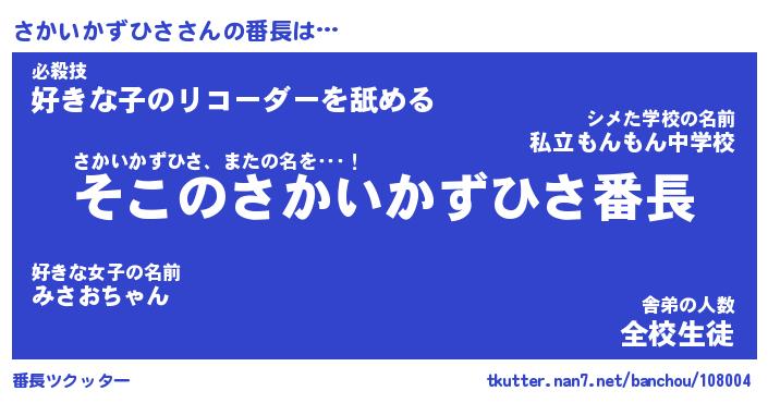 | 肩書あだ名 | 『さかいかずひさ御曹司』 |