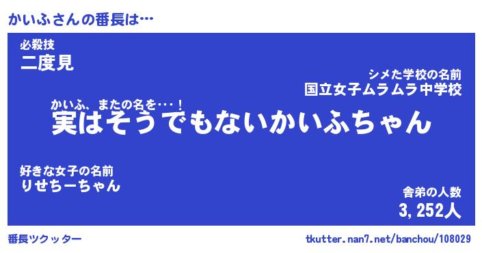 | 意味不明あだ名 | 『ペロリンかいふ』『かいふフォーエバー』 |