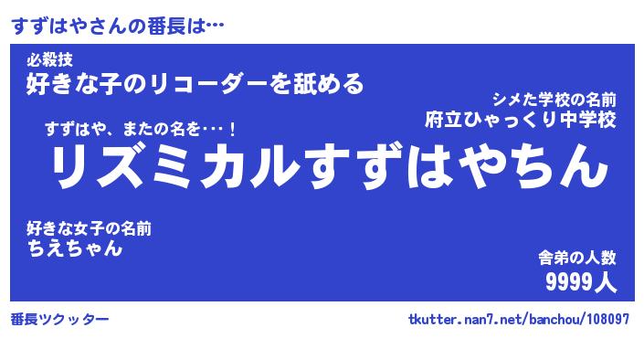 | 意味不明あだ名 | 『ペロリンすずはや』『永久保存すずはや』 |