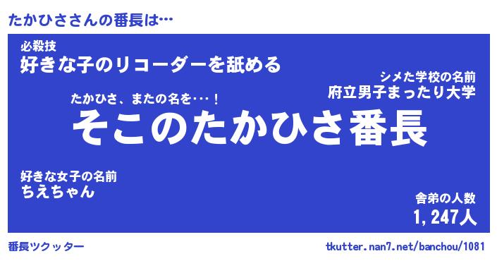 | 意味不明あだ名 | 『ペロリンたかひさ』『永久保存たかひさ』 |