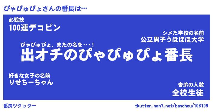 | ヘコむあだ名 | 『ぴゃにー』『つくし』『ぴゃを』 |