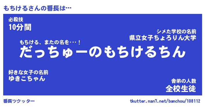| 伝説のあだ名 | 『伝説のスナイパーもちける』 |