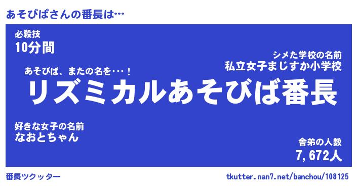 | 意味不明あだ名 | 『ペロリンあそびば』『永久保存あそびば』 |