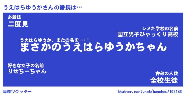 | 伝説のあだ名 | 『伝説のスナイパーうえはらゆうか』 |