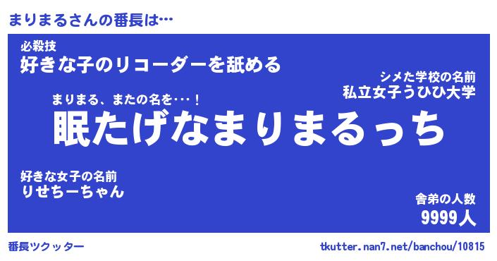 | 肩書あだ名 | 『まりまる御曹司』『まりまる大統領』 |