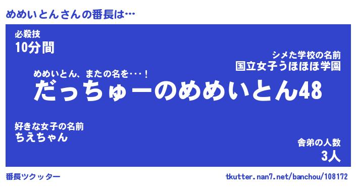 | 伝説のあだ名 | 『伝説のスナイパーめめいとん』 |