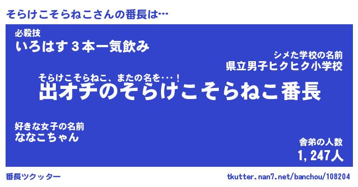 | 欧米人風あだ名 | 『マイケルそらけこそらねこ』 |