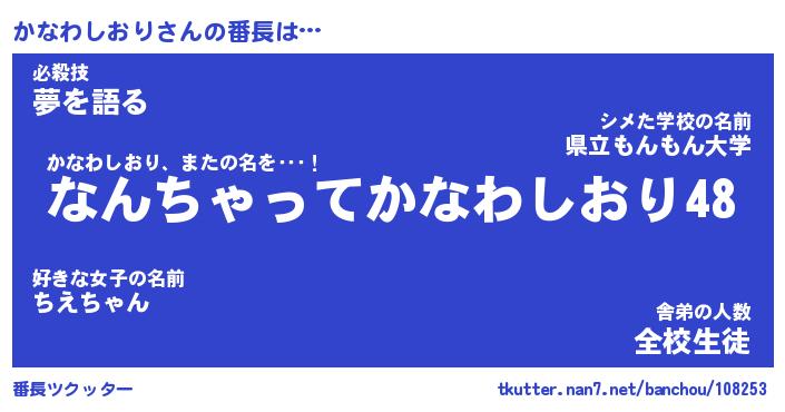 | ヒーロー風カッコイイあだ名 | 『スーパーカナワシオリ』『魔戒騎士カナ』 |