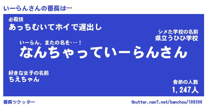 | 意味不明あだ名 | 『ペロリンいーらん』『永久保存いーらん』 |