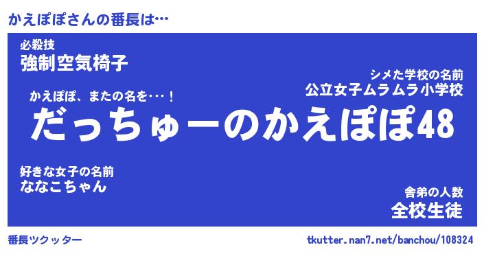 | 肩書あだ名 | 『かえぽぽ店長』『かえぽぽ総理大臣』 |