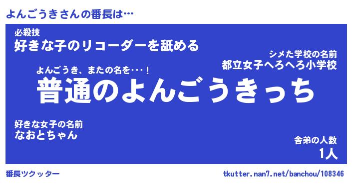 | ポケモン風あだ名 | 『ヨンチュウ』『ヨンゴダネ』 |