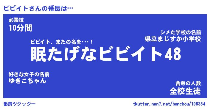 | ヒーロー風カッコイイあだ名 | 『スーパービビイト』『暗黒騎士ビビ』 |