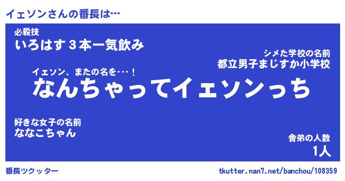 | ヘコむあだ名 | 『イェにゅー』『なまこ酢』『イェを』 |