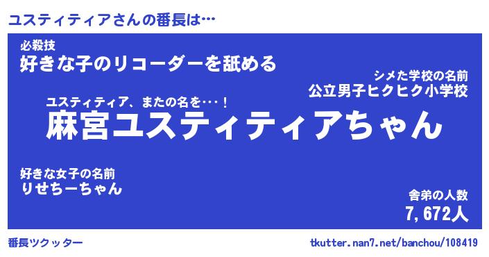 | 欧米人風あだ名 | 『マイケルユスティティア』 |
