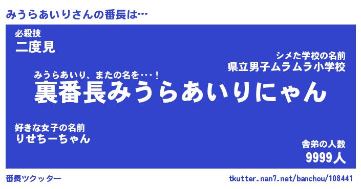| ヒーロー風カッコイイあだ名 | 『スーパーミウラアイリ』『天弓騎士ミウ』 |
