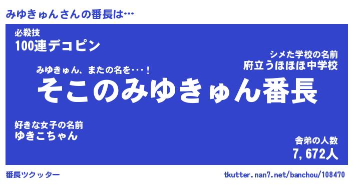 | ピコ太郎風あだ名 | 『ミコ六郎』『ピミ八郎』『ミユ五郎』 |