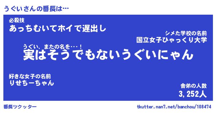 | 意味不明あだ名 | 『ペロリンうぐい』『うぐいフォーエバー』 |