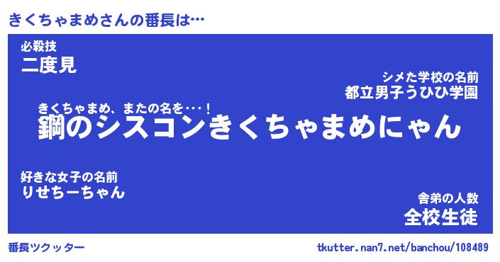 | ヒーロー風カッコイイあだ名 | 『スーパーキクチャマメ』『暗黒騎士キク』 |