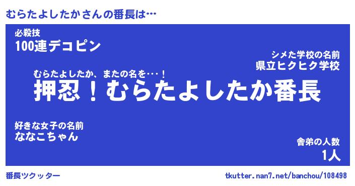 | ヒーロー風カッコイイあだ名 | 『スーパームラタヨシタカ』 |