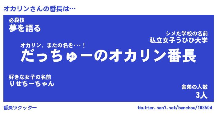 | 肩書あだ名 | 『オカリンCEO』『オカリン大統領』 |