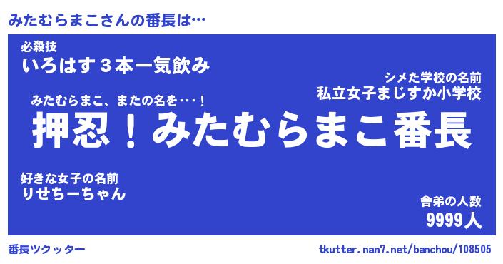 | 伝説のあだ名 | 『封印されしスナイパーみたむらまこ』 |