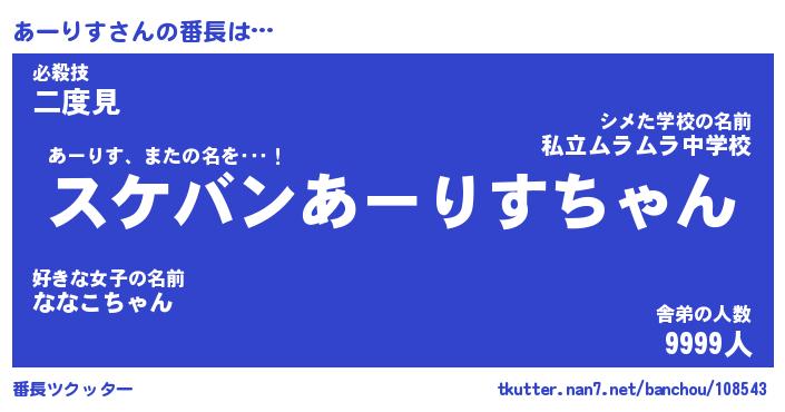 | 肩書あだ名 | 『あーりす御曹司』『あーりす国家主席』 |