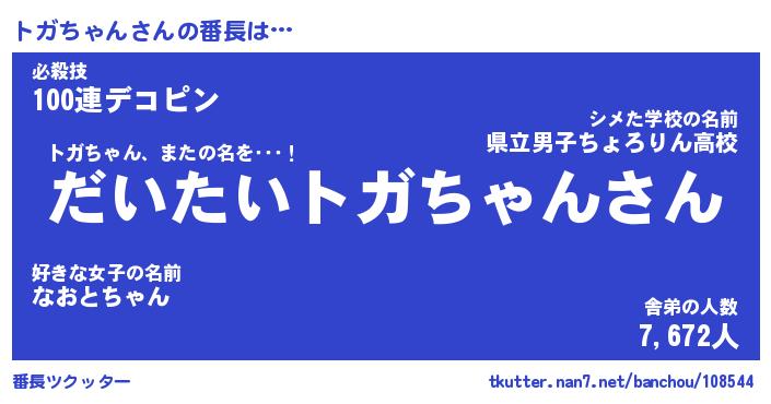 | ポケモン風あだ名 | 『トガチュウ』『トガチダネ』 |