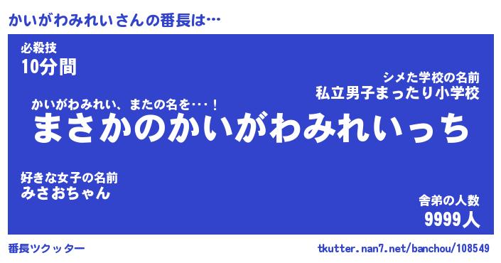 | 胡散臭い通販商品みたいなあだ名 | 『必ず成功する水晶球…その名も「かいがわみれい」』 |