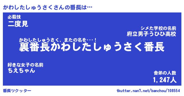 | 肩書あだ名 | 『かわしたしゅうさく店長』 |