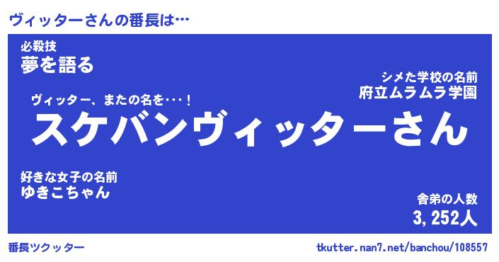 | ヒーロー風カッコイイあだ名 | 『スーパーヴィッター』『暗黒騎士ヴィ』 |