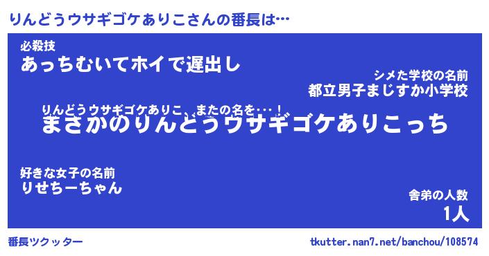 | 伝説のあだ名 | 『伝説のスナイパーりんどうウサギゴケありこ』 |
