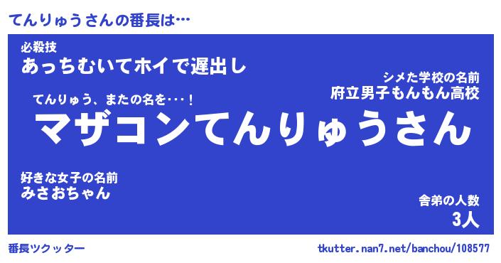 | ヒーロー風カッコイイあだ名 | 『スーパーテンリュウ』『魔戒騎士テン』 |