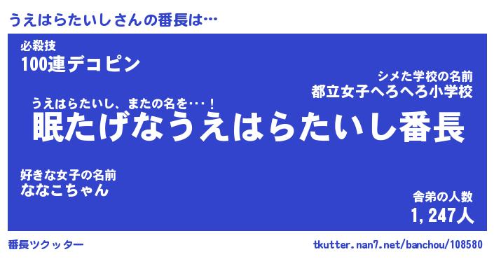 | 伝説のあだ名 | 『封印されしスナイパーうえはらたいし』 |