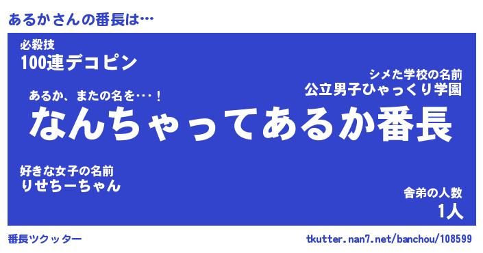 | 意味不明あだ名 | 『ペロリンあるか』『あるかフォーエバー』 |