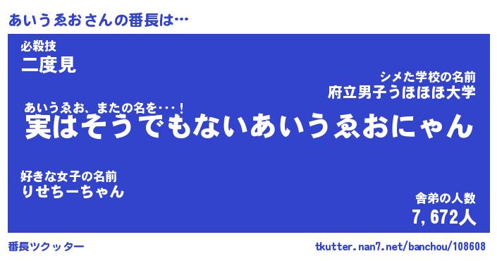| 2回繰り返すあだ名 | 『あいあい』『ああいい』『ぬらぬら』 |