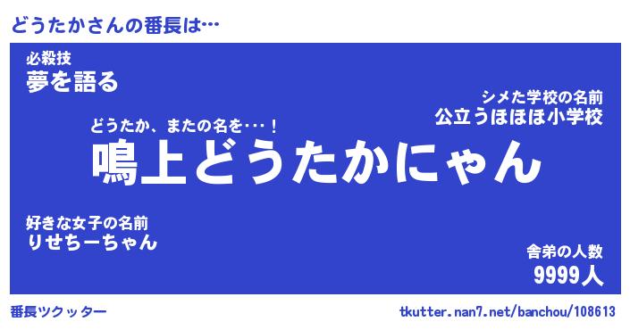 | 意味不明あだ名 | 『ペロリンどうたか』『永久保存どうたか』 |